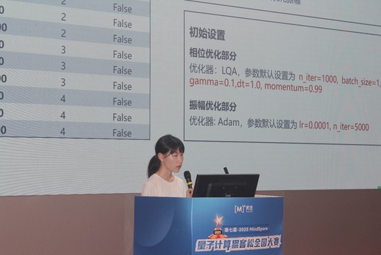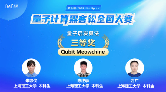華為MindSpore量子計算黑客松是目前國內舉辦最早、影響力最廣的量子信息技術賽事之一,吸引了包括清華大學、浙江大學、復旦大學、中國科學院軟件研究所、香港理工大學等在內的高校與科研機構積極參賽,堪稱量子計算領域的“創新盛會”。本屆大賽共有927名參賽選手、203支參賽團隊報名參賽,涵蓋了國內外知名高校、研究所及相關企業團隊。賽事設置“量子組合優化”“量子誤差緩解”“量子啟發算法”三個賽道,采用熱身賽、初賽、決賽和現場答辯四階段的賽程設計,旨在全面考察參賽團隊的算法設計能力、理論深度與創新實踐水平。我校團隊通過初賽得分比拼進入決賽,在決賽論文評審環節表現良好,最終成功入圍全國總決賽答辯的七強隊伍,獲得量子啟發算法賽道三等獎。該賽道共設特等獎1名、一等獎1名、二等獎2名、三等獎3名,競爭極為激烈。