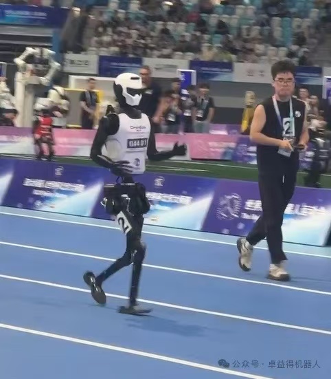 8月14日開幕式上,卓益得團(tuán)隊(duì)自主研發(fā)的 “行者二號(hào)” 被選中作為護(hù)旗手,當(dāng)它邁著穩(wěn)健而精準(zhǔn)的步伐,護(hù)送著象征榮譽(yù)與精神的旗幟走過會(huì)場(chǎng)時(shí),每一個(gè)關(guān)節(jié)的靈活轉(zhuǎn)動(dòng)、每一次步伐的協(xié)調(diào)統(tǒng)一,都彰顯著中國(guó)在人形機(jī)器人運(yùn)動(dòng)控制領(lǐng)域的突破性進(jìn)展,現(xiàn)場(chǎng)觀眾的掌聲與驚嘆聲此起彼伏,為這一融合了科技與儀式感的瞬間所震撼。而在8月15日舉辦的1500米決賽中,”行者二號(hào)“又展現(xiàn)出強(qiáng)悍的運(yùn)動(dòng)實(shí)力,在第二組小組奪取第一。這一亮眼成績(jī),不僅是繼半馬季軍之后的又一精彩時(shí)刻,更用實(shí)力向世界宣告:來(lái)自中國(guó)人形機(jī)器人的“速度與激情”,正以不可阻擋之勢(shì)驚艷全球。
