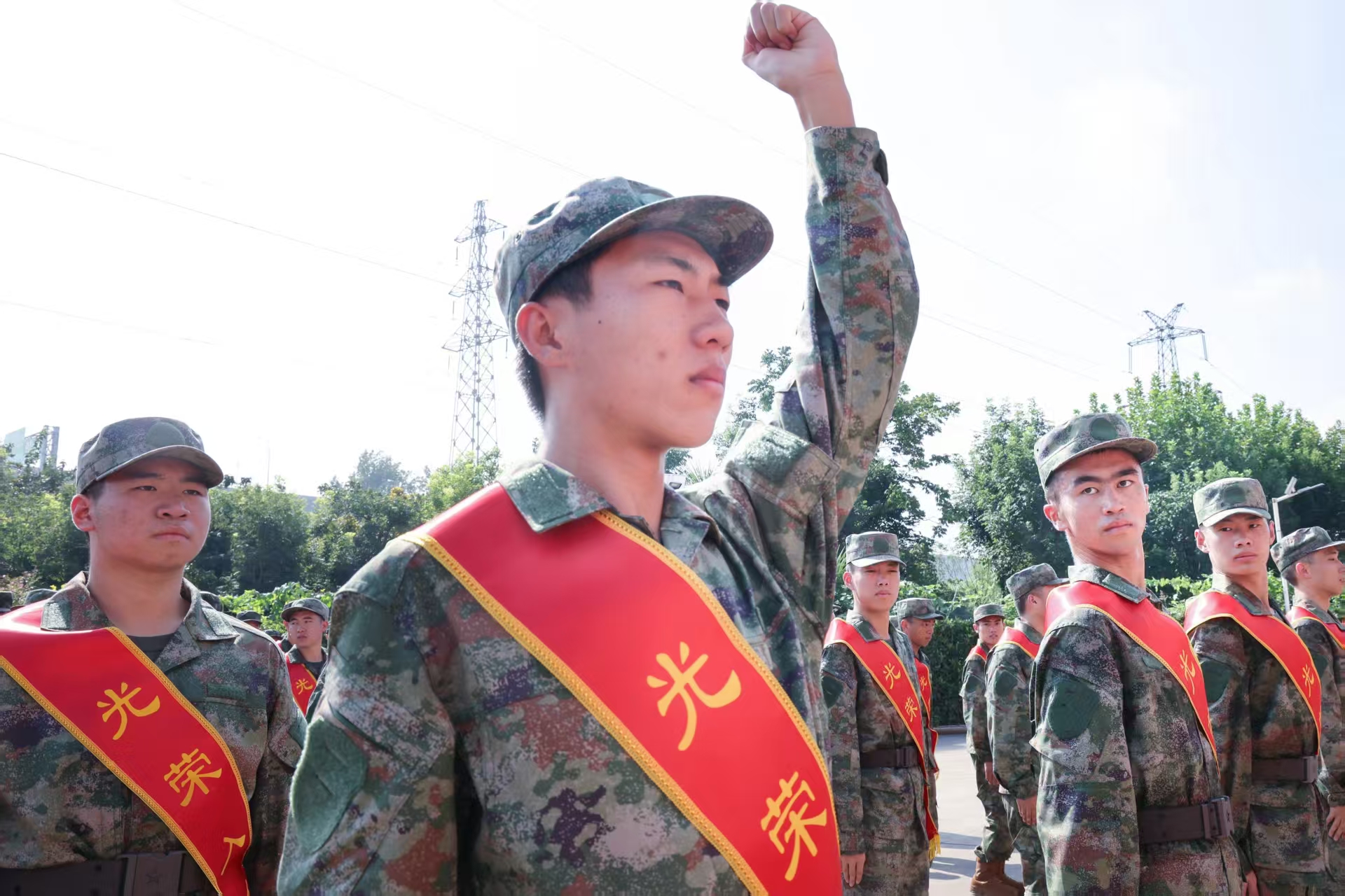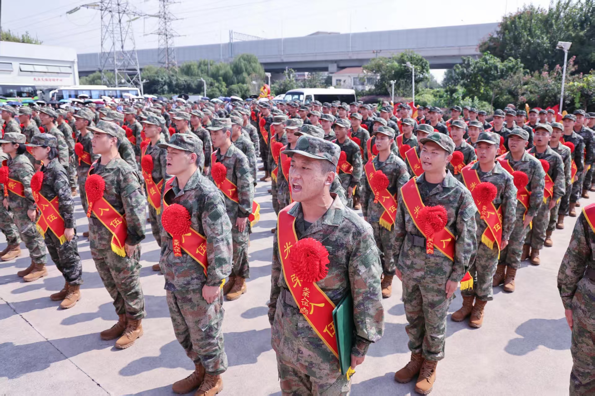 在《中國人民解放軍軍歌》慷慨激昂的歌聲中,身著戎裝、胸戴紅花的熱血青年們精神抖擻、意氣風發,懷著對軍營生活的向往和對保家衛國的堅定信念,開啟嶄新的軍旅生涯。