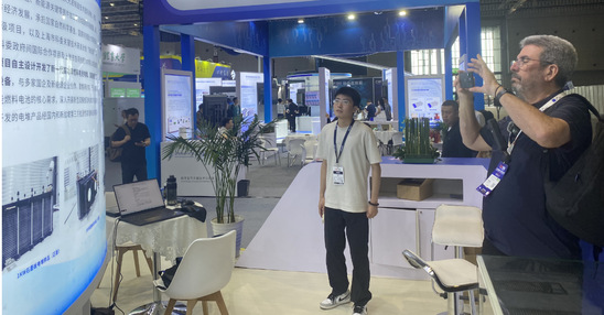 團(tuán)隊(duì)成員在工博會展臺向觀眾介紹技術(shù)創(chuàng)新點(diǎn)