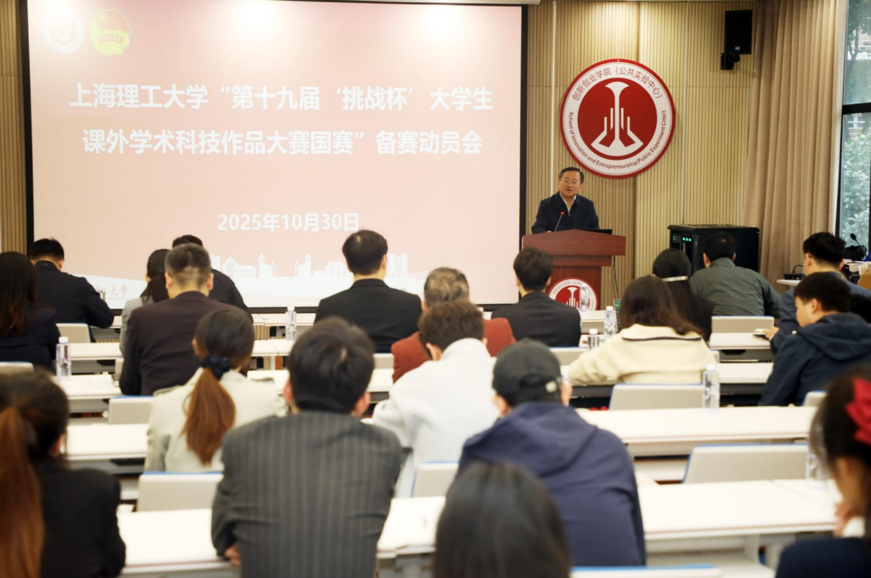 10月30日上午,上海理工大學(xué)在雙創(chuàng)中心會(huì)議室舉行第十九屆“挑戰(zhàn)杯”全國(guó)大學(xué)生課外學(xué)術(shù)科技作品競(jìng)賽國(guó)賽備賽動(dòng)員會(huì)。校長(zhǎng)朱新遠(yuǎn),黨委副書(shū)記、副校長(zhǎng)劉德強(qiáng)出席,校團(tuán)委、雙創(chuàng)學(xué)院及相關(guān)學(xué)院負(fù)責(zé)人、國(guó)賽參賽師生代表共同參加。