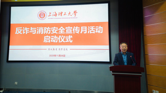 11月6日上午,學校2025年反詐與消防安全宣傳月活動啟動儀式暨反詐與消防安全專題培訓在光電大樓一樓報告廳舉行,本次活動是學校貫徹落實上海市教委關于反詐與消防安全工作要求的重要舉措。楊浦區消防救援支隊、上海市文保分局治安管理支隊、滬東高校派出所相關負責人,學校保衛部(處)、學工部、研工部、后勤處等相關負責人出席活動,學校各二級單位治保主任、反詐專員、實驗室管理員、輔導員代表、學生代表共100人左右參加活動,校保衛部(處)干部主持活動。