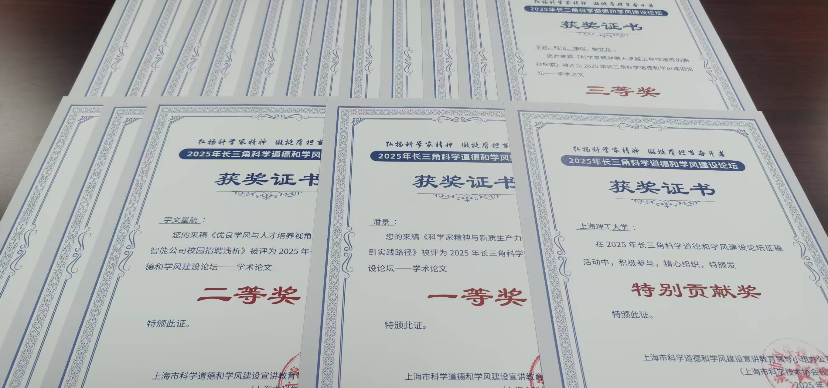 2025年長三角科學道德和學風建設論壇以“弘揚科學家精神,做挺膺擔當奮斗者”為主題,自3月啟動以來,論壇共收到41 家高校和科研院所投稿作品992 件。經過激烈角逐,我校選送的師生作品獲評學風建設學術論文一等獎1項、二等獎3項、三等獎8項、優秀獎7項;獲評學風傳承工作案例二等獎1項、三等獎4項、優秀獎7項;獲評科學家精神文化作品三等獎1項。此外,博士研究生姚宇獲評“研究生創新實踐之星”。