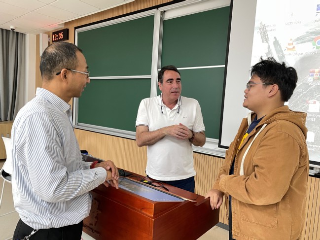 交流討論環節,同學們踴躍用英文與José Ramón博士互動。他還展望了土木工程與新興技術深度融合的廣闊前景,生動的講述激發了在座同學對專業未來發展的濃厚興趣。