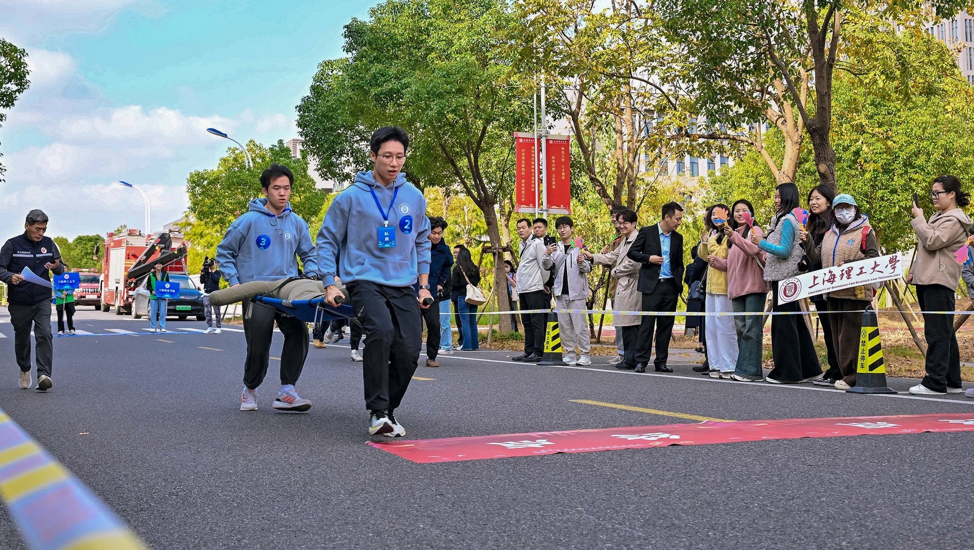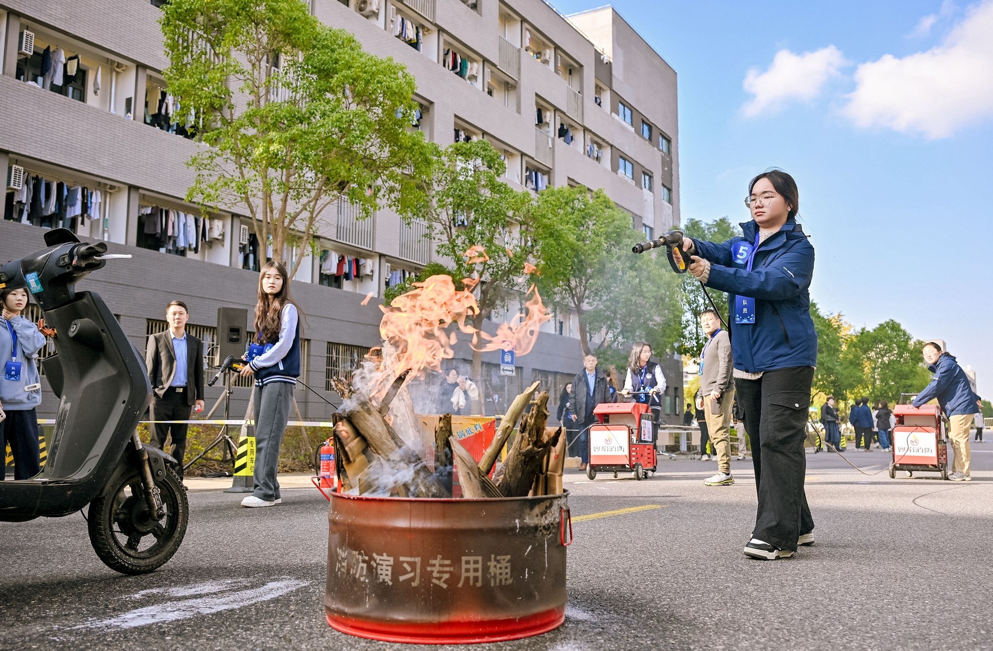 上午的技能操作展示設置四個實戰項目:“固守待援”“云梯逃生”“擔架轉運”和“電動自行車火災撲救”,重點考察學生的應急反應和團隊協作能力。下午的理論競答包含七個環節,從多角度檢驗學生對國家安全知識的理解與運用。