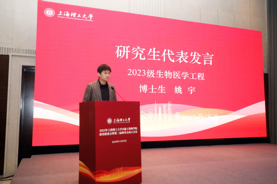 2023級生物醫(yī)學(xué)工程博士研究生姚宇作為卓越獎學(xué)金獲得者發(fā)言。他分享了參與卓越工程師學(xué)院校企聯(lián)合培養(yǎng)的經(jīng)歷,講述了在“實驗室-醫(yī)院-企業(yè)”三位一體實踐模式中的成長與突破。在校內(nèi)、校外導(dǎo)師共同指導(dǎo)下,姚宇成功構(gòu)建"微樣本-產(chǎn)線標(biāo)定轉(zhuǎn)換模型",相關(guān)成果榮獲"卓越杯"創(chuàng)業(yè)大賽二等獎。他表示將堅守“讓技術(shù)守護生命”的初心,爭做產(chǎn)學(xué)研融合的踐行者與轉(zhuǎn)型者。