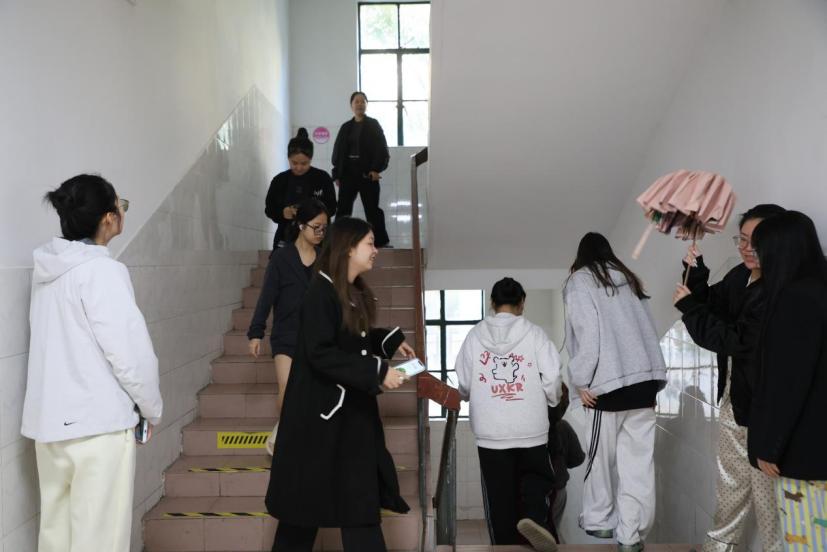 演練前,輔導員通過專項通知明確流程與注意事項。下午兩點,三樓模擬起火點啟動,無毒電子煙模擬真實煙霧環(huán)境,警報聲響起。國際學生在引導下沉著有序,沿預定路線通過一樓三個安全出口疏散至室外安全區(qū)域。期間,輔導員與物業(yè)管理人員按預案逐樓層、逐房間清查,確保全員安全撤離,高效檢驗了應急反應能力。