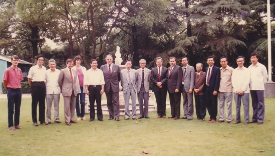 1985年10月,瑞金賓館,時任副市長劉振元接見陳之航(左八)等教師