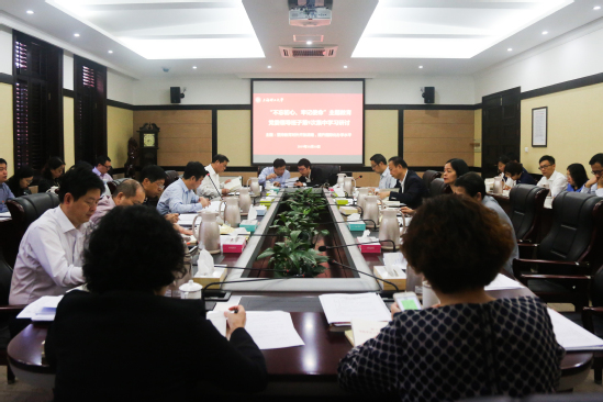 10月10日,學(xué)校召開黨務(wù)工作會(huì)議暨“不忘初心、牢記使命”主題教育推進(jìn)會(huì)。黨委書記吳堅(jiān)勇、黨委副書記孫躍東、主題教育領(lǐng)導(dǎo)小組辦公室副主任、二級(jí)黨組織書記與會(huì)。會(huì)議由孫躍東主持。會(huì)上,環(huán)境學(xué)院、醫(yī)食學(xué)院、管理學(xué)院、能動(dòng)學(xué)院、外語學(xué)院、圖文信息黨委負(fù)責(zé)人匯報(bào)主題教育工作開展情況。主題教育領(lǐng)導(dǎo)小組辦公室副主任就聯(lián)絡(luò)文案、學(xué)習(xí)宣傳、巡回指導(dǎo)工作通報(bào)相關(guān)情況。會(huì)上布置了開展申報(bào)上海市高?!叭恕本C合改革示范項(xiàng)目有關(guān)事宜。孫躍東同志對(duì)基層黨組織的主題教育學(xué)習(xí)落實(shí)、問題整改工作提出要求。各二級(jí)黨組織要扎實(shí)開展好基層黨支部的主題教育,突出特色、創(chuàng)新性的舉措,確保黨員的“六個(gè)一”和書記的“八個(gè)一”落實(shí)到位。要對(duì)照列出的問題清單,分門別類提出整改方案,拿出舉措辦法,定出制度規(guī)矩。吳堅(jiān)勇同志對(duì)二級(jí)黨組織的主題教育工作開展情況給予了肯定,并強(qiáng)調(diào)主題教育是當(dāng)前一項(xiàng)十分重要的政治任務(wù),各二級(jí)黨組織要進(jìn)一步壓實(shí)主體責(zé)任,邊學(xué)邊改,切實(shí)做到主題教育“全覆蓋”;要將主題教育與學(xué)校、學(xué)院的中心工作相結(jié)合,避免“兩張皮”現(xiàn)象,保證主題教育取得成效。會(huì)議現(xiàn)場(chǎng)供稿:校黨委組織部